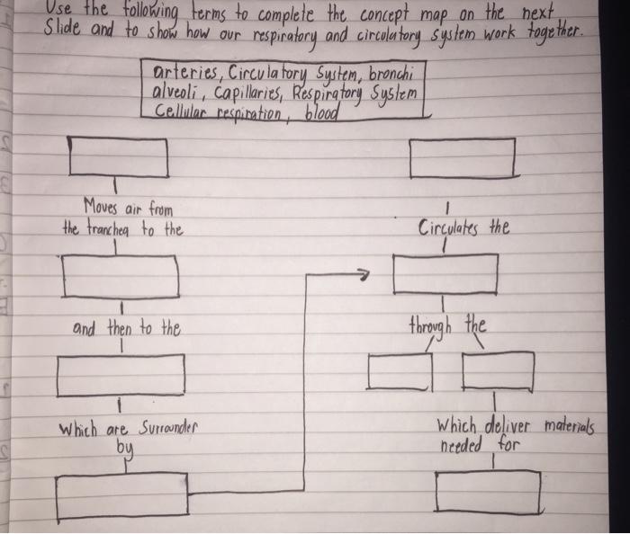 Solved Side the following terms to complete the concept map
