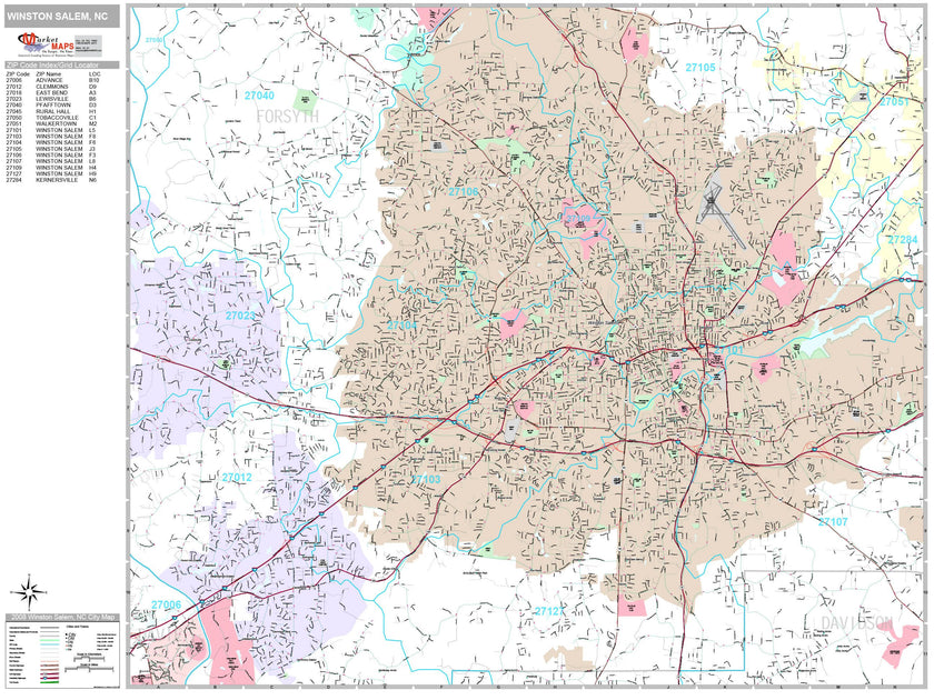 Winston Salem, NC Zip Code Map Forsyth County, NC Zip